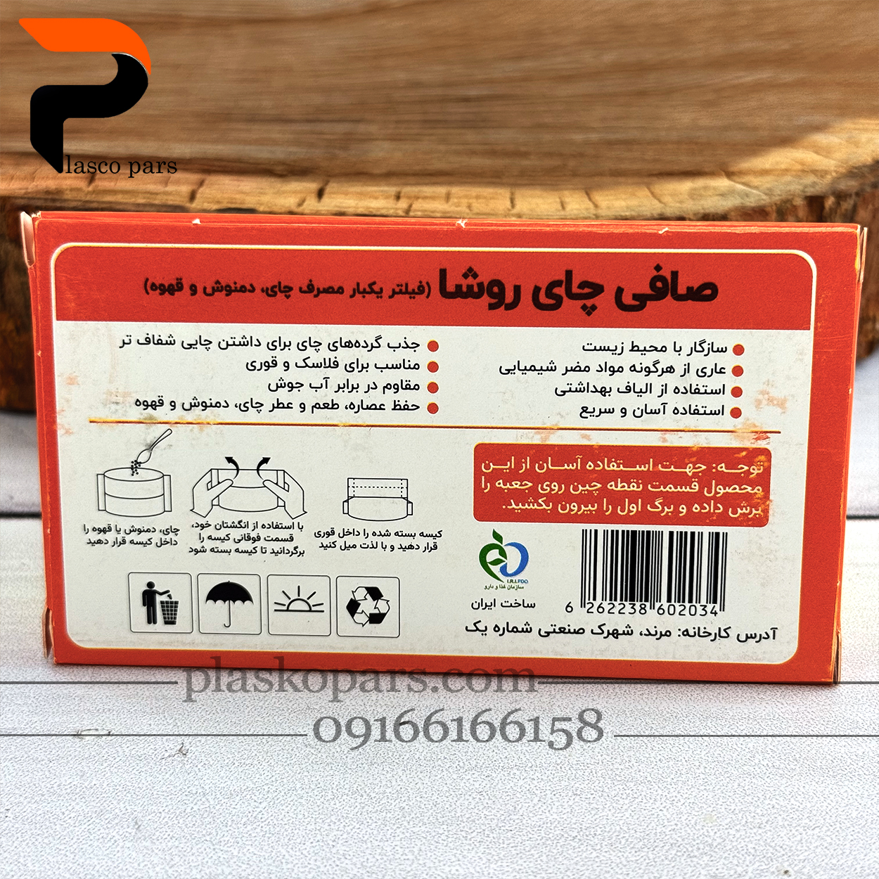 فیلتر چای یک بار مصرف روشا بسته 70 عددی قابل بازیافت بوده و به طبعیت باز می گردد همچنین دربرابر آب جوش مقاوم است و شکل و بافت خود را از دست نمیدهد.بسته بندی این محصول به شکل آسان مصرف است. استفاده از این فیلتر به تمامی خانم های خانه دار توصیه می شود چون یک راهکار آسان برای راحت شدن از شر تفاله های موجود در چای است. با وجود فیلتر چای، دیگر با این معضل روبهرو نخواهید شد.