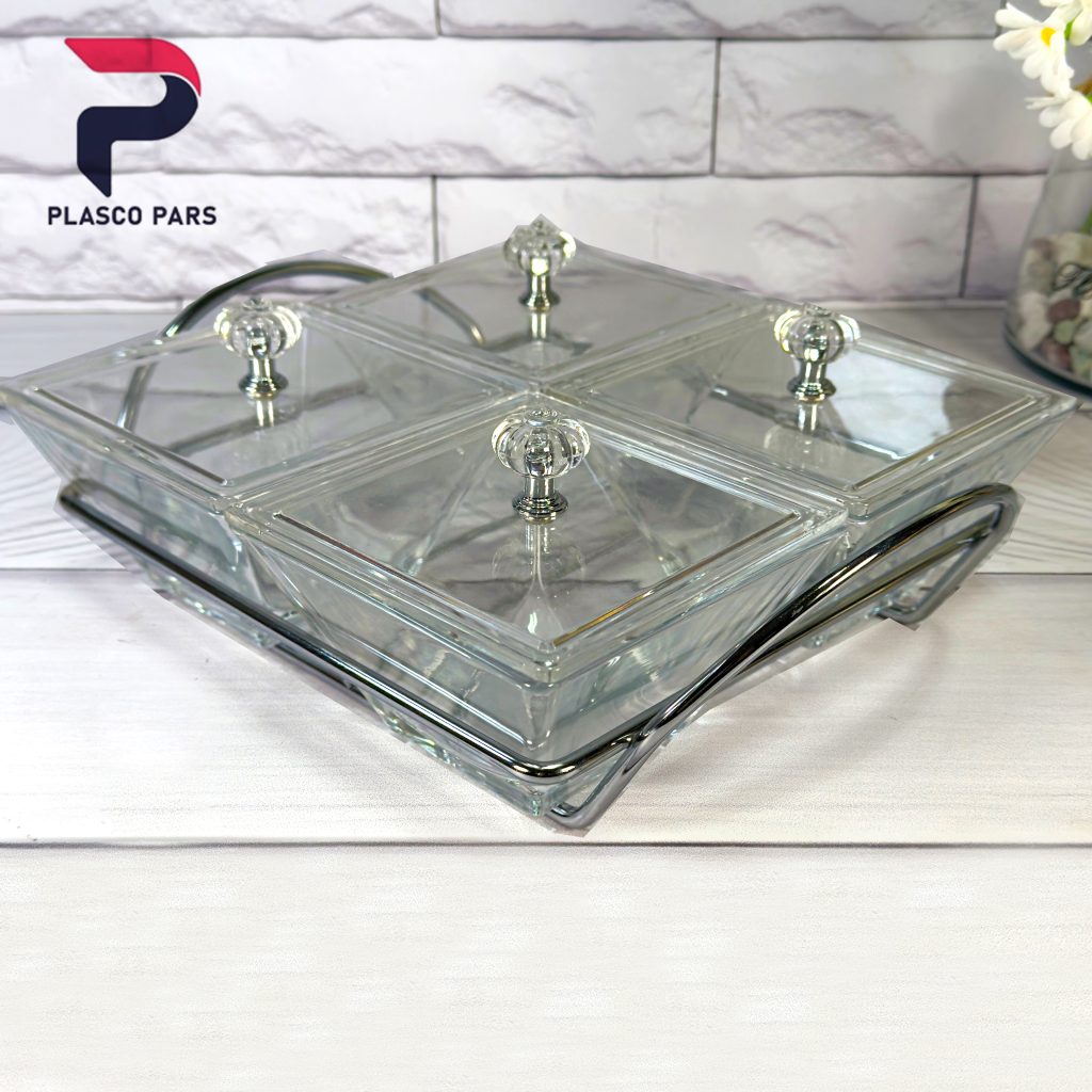 اردوخوری شیشه ای مربع 4 خانه لیمون