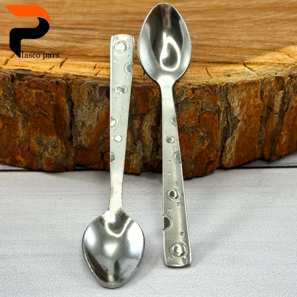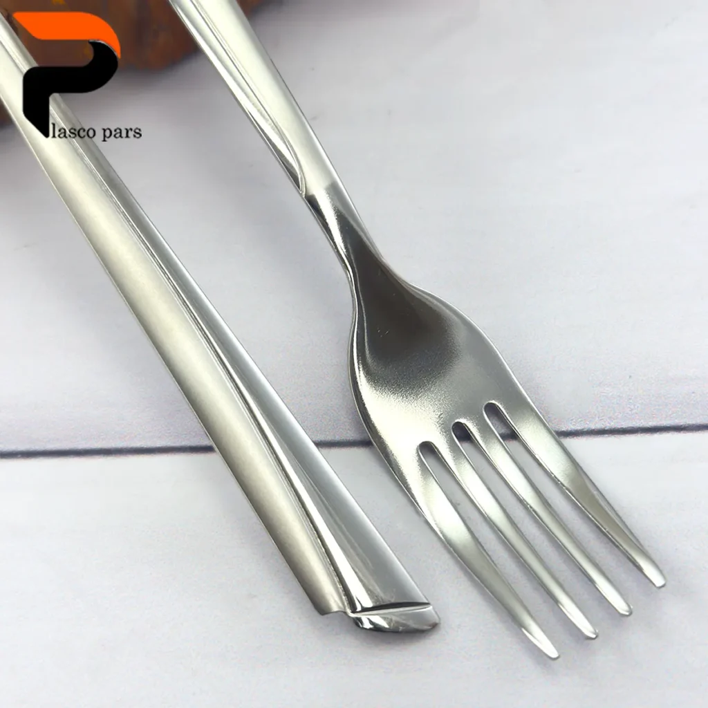 - استیل ضد زنگ (Stainless Steel): بهترین و محبوبترین جنس برای سرویسهای قاشق، کارد و چنگال است. به دلیل مقاومت بالا در برابر زنگزدگی، خوردگی و خط و خش، دوام زیادی دارد. آلیاژهای با نسبت بالاتر کروم و نیکل (مانند ۱۸/۱۰) کیفیت بالاتری دارند.